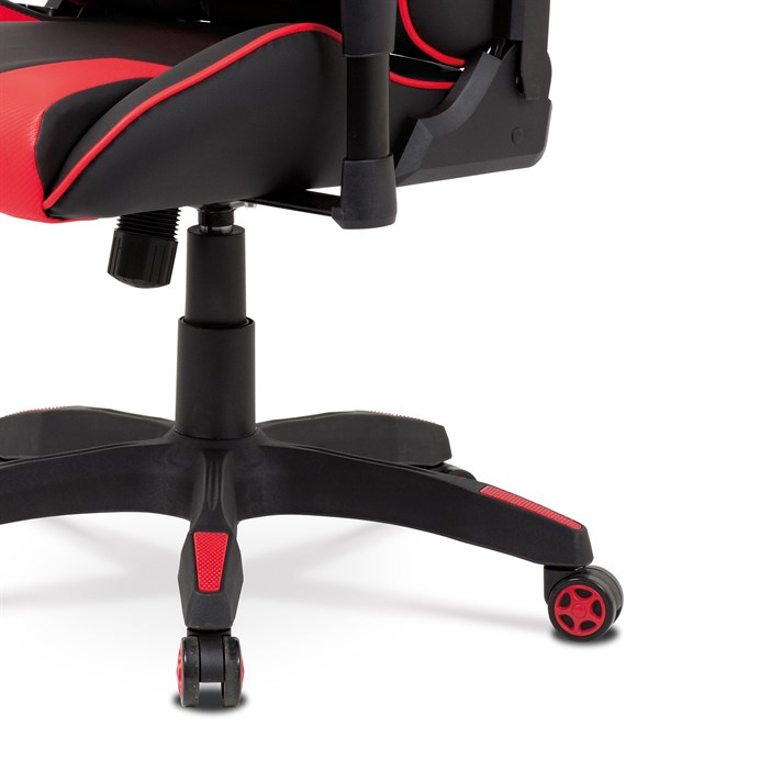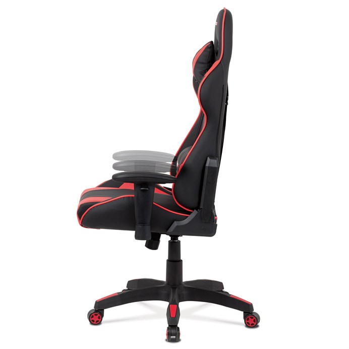 Kancelářská židle KA-F03 RED je herní model potažený červenou a černou ekokůží, která zajišťuje snadnou údržbu a odolnost proti opotřebení. Plastový kříž s pěti rameny poskytuje stabilní základnu, zatímco houpací mechanismus umožňuje plynulé naklápění opěradla až do 180°, což umožňuje maximální relaxaci. Výškově nastavitelné sedadlo a 2D područky s možností nastavení výšky a hloubky přispívají k ergonomickému sezení přizpůsobenému individuálním potřebám uživatele. Integrovaná bederní opěrka a polštářek pro oporu hlavy podporují správné držení těla během dlouhých hodin práce nebo hraní. Židle je navržena pro dlouhodobé používání s důrazem na komfort i funkčnost.