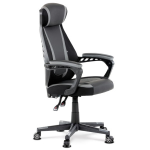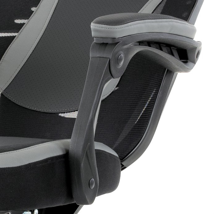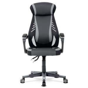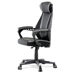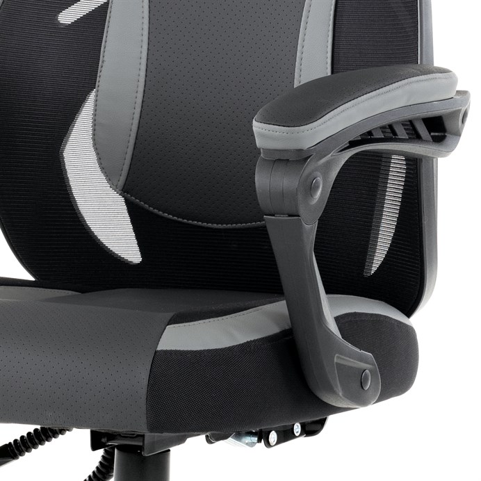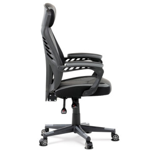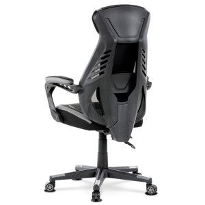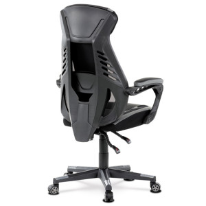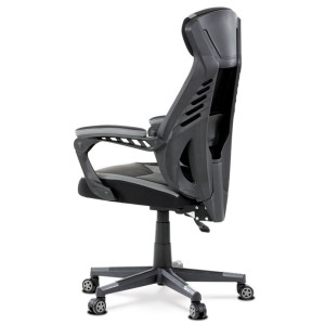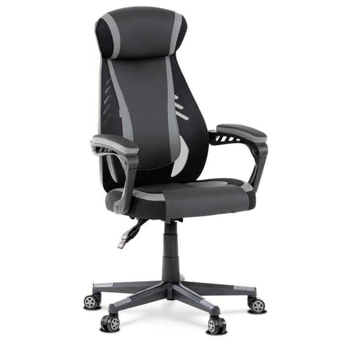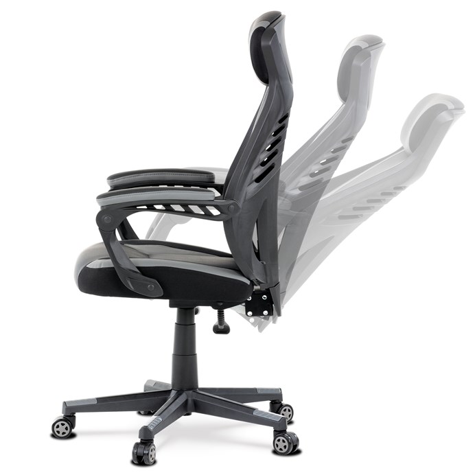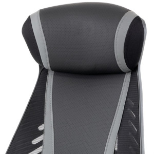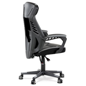 Potah je kombinací šedé a černé perforované ekokůže na sedáku i opěráku, černé síťoviny MESH a černé, jemně hrubé látky látky na sedáku i bocích opěrky hlavy. Opěrák je černý plastový výlisek ve futuristickém designu. Výplň sedáku i hlavové opěrky je z velmi kvalitní a tuhé PU pěny, vyztužení a pružnost zajišťují látkové popruhy.