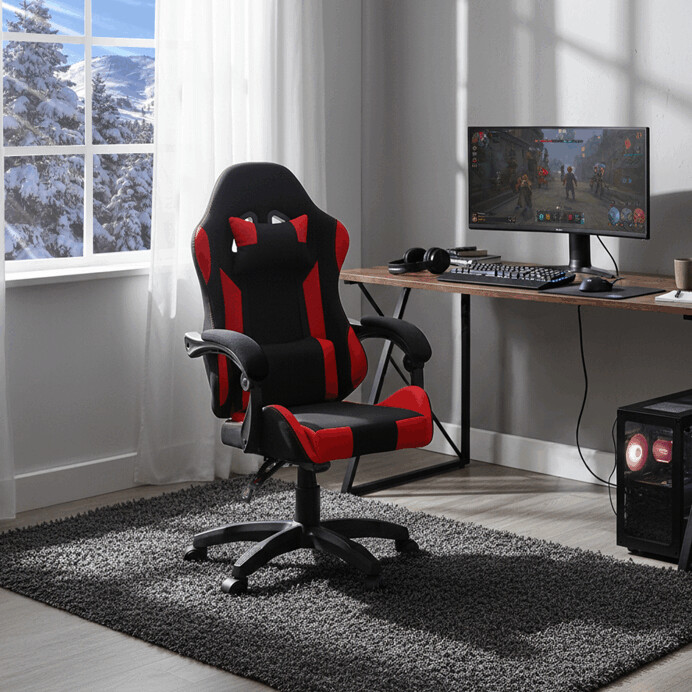 Herní křeslo, synchronní mechanismus, černá látka, KA-R209 RED