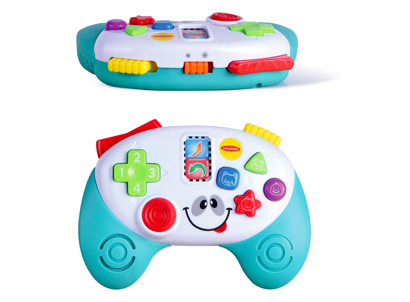 Dotaz na produktHerní ovladač. Rozměry 14,5x11 cm. Světelné a zvukové efekty. 2xAA baterie součástí. Přepínač ON/OFF na horní straně, přepínač hlasitosti na zadní straně ovladače.