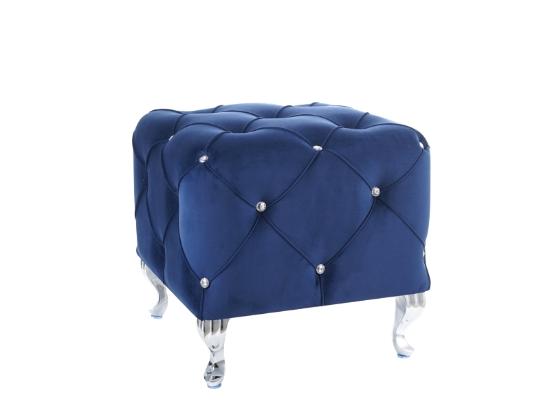 pouf, sametová látka: námořnická BLUVEL 86 / nohy: kov, barva: stříbrná