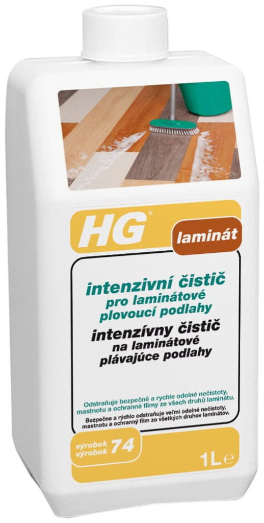 HG Intenzivní čistič pro laminátové plovoucí podlahy odstraňuje účinně, bezpečně a rychle velmi odolné nečistoty, mastnotu a ochranné filmy ze všech druhů laminátu.
