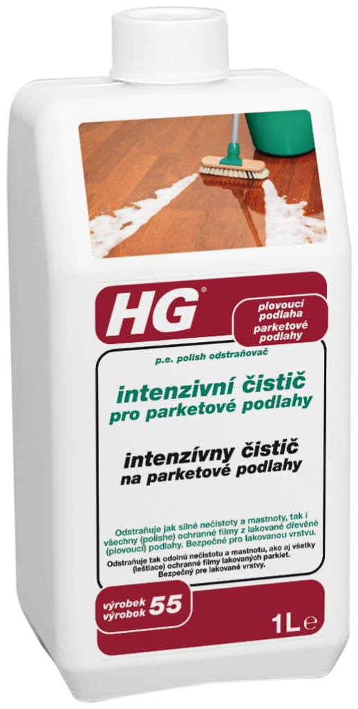 HG intenzivní čistič pro parketové podlahy je 100% bezpečný a silný, speciálně vyvinutý intenzivní čistič pro dřevěné parketové podlahy, který nepoškozuje lakovaný povrch. Přípravek zároveň dokáže odstranit všechny typy lesků a jiných ochranných povlaků.