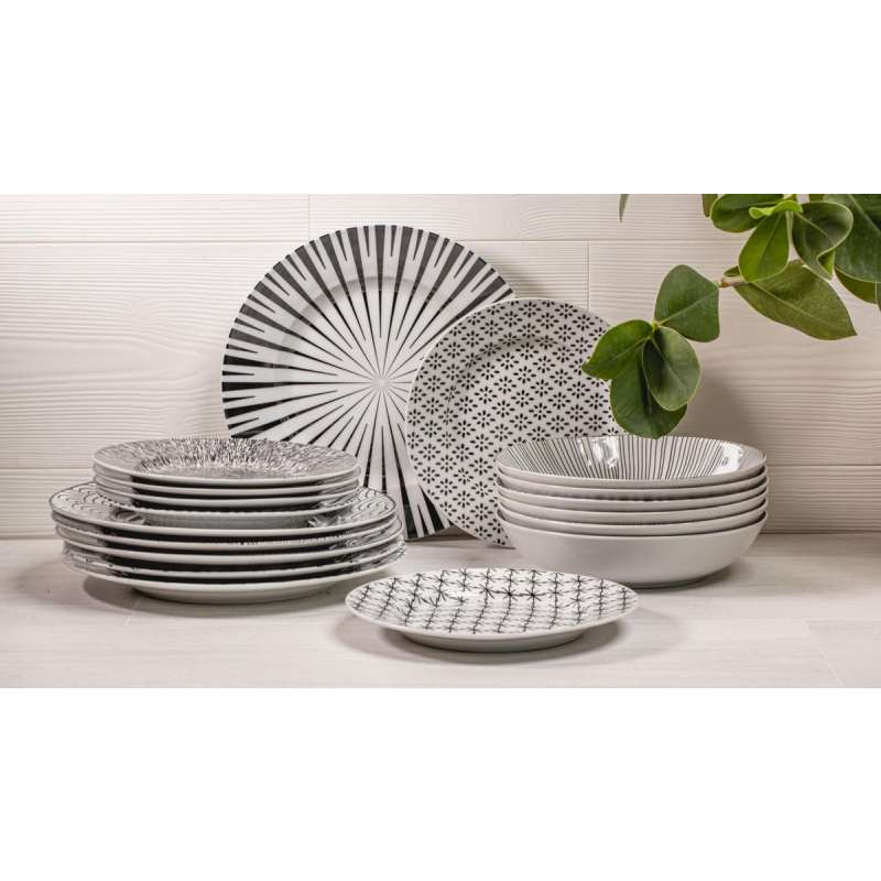 Dotaz na produkt Na splátky ještě dnesPřineste zábavu na stůl s touto sadou nádobí Cookinglife! Sada se skládá z několika talířů s opakujícími se potisky. Tyto potisky byly pečlivě vybrány tak, aby i přes davy zůstaly jako celek. Upozornění: tyto talíře jsou dodávány smíšené, takže nelze zvolit potisk. Talíře kombinujte například s jídelními talíři, hlubokými talíři nebo hrnky z kolekce Black Sailor. 6 jídelních talířů o 27 cm 6 snídaňových talířů o 20,5 cm 6 hlubokých talířů o 19,5 cm