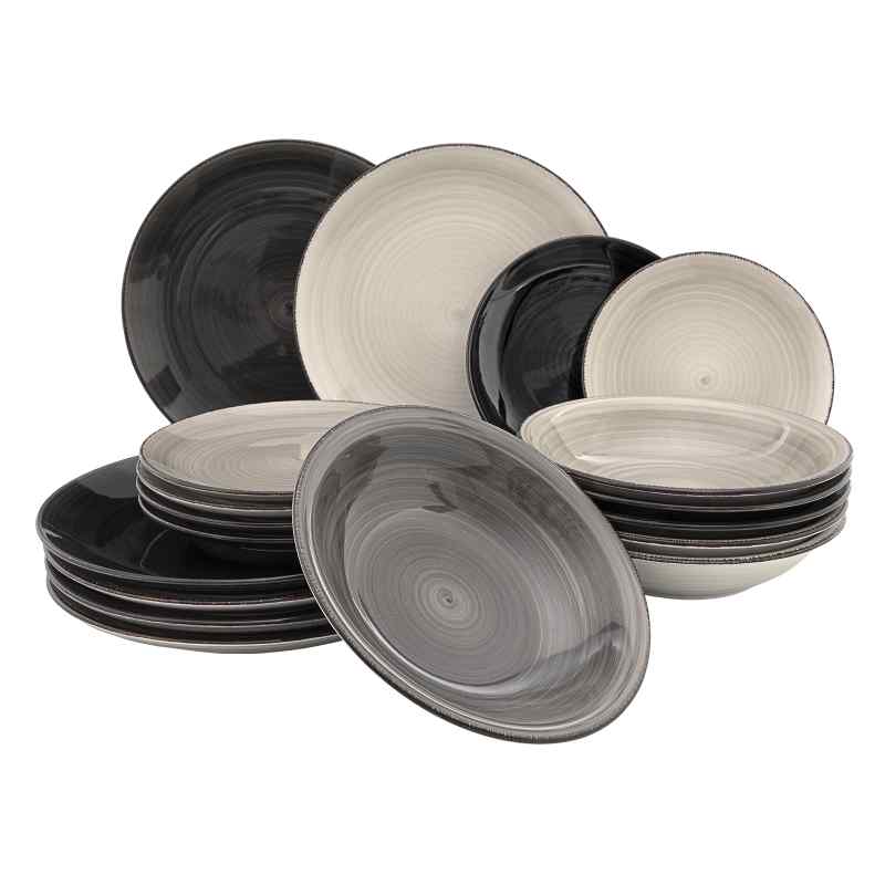 Dotaz na produkt Na splátky ještě dnesChtěli byste něco jiného, ??než je vaše standardní sada bílého nádobí, ale nechce se vám příliš vybalovat? Pak si vyberte tuto sadu nádobí Vintage Loft. Krásné neutrální barvy jsou různé, ale rozhodně příliš nevynikají. Vezměte prosím na vědomí: tyto desky jsou dodávány smíšené, takže nelze vybrat žádnou barvu. Sada se skládá z: 6 snídaňových talířů o 19,5 cm 6 hlubokých talířů o 20,5 cm 6 jídelních talířů o 27 cm