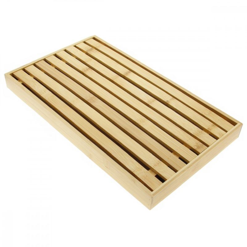 Dotaz na produktBambusové prkénko na krájení chleba s podtácem na drobky. Snadné vyprázdnění po zvednutím mřížky.- Materiál: bambus- Barva: přírodní hnědá- Délka: 38 cm - Šířka: 23 cm- Výška: 4 cm