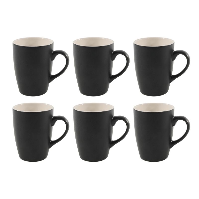Dotaz na produktPorcelánové šálky na kávu na cca 340 ml na kávu a čaj - černá vnější a béžová uvnitřVelikost každého šálku je cca. 12 cm x 10, 5 cm (průměr včetně rukojeti x výška)Materiál: porcelánBarva: matná černá zvenčí / béžová zevnitřSada 6 černých šálků na kávu,každý šálek uvnitř béžovýKapacita cca 340 mlSnadné čištění protože je vhodný do myčky nádobíIdeální pro váš konferenční stolek