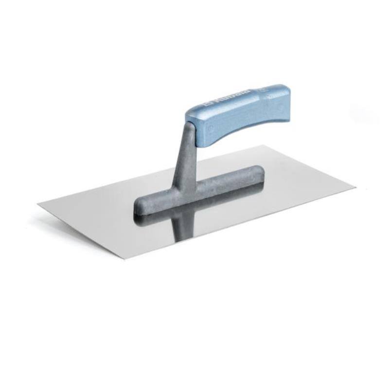 hladítko nerezové hladké 270 x 130 mmbuková, lakovaná, ergonomická rukojeťnerezový, kyselině odolný plech tl. 0,7 mmna podlahy, nanášení omítek, lepidel a štuků