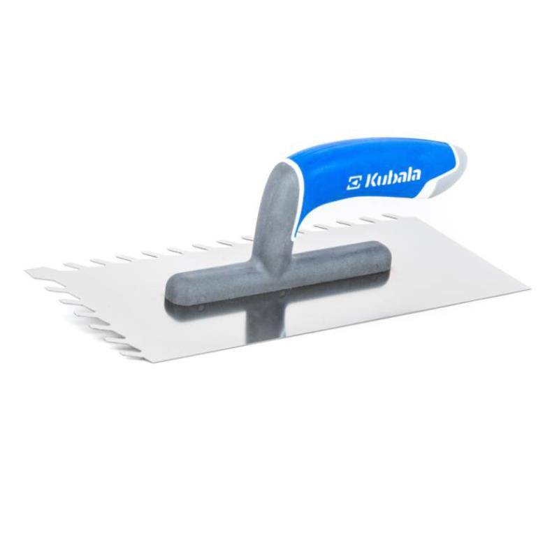 • nerezové hladítko se šikmým zubem, měkká rukojeť na polyamidové noze se skleněným vláknem o rozměru 130 x 270 mm, zub 10 mm