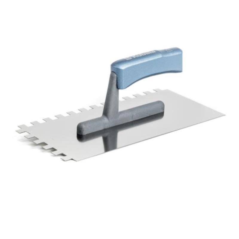 hladítko nerezové 270 x 130 mm - zubbuková, lakovaná, ergonomická rukojeťnerezový, kyselině odolný plech tl. 0,7 mmnanášení lepidel, velikost zubů proporcionálně k velikosti obkladaček