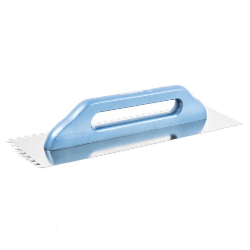 • na podlahy, nanášení omítek, lepidel a štuků, velikost zubů proporcionálně k velikosti obkladaček