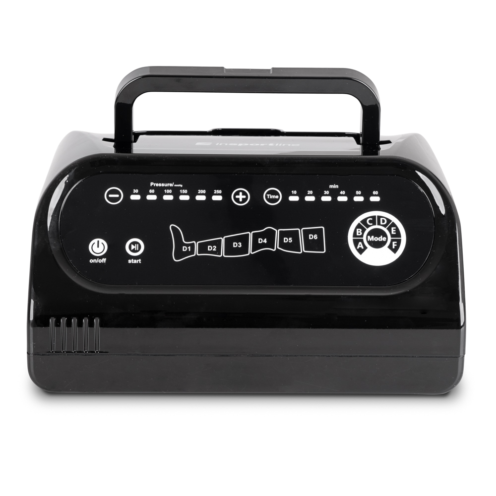 Hlavní jednotka inSPORTline Compisimo má intuitivní ovládací panel i dálkový ovladač. Nabízí na výběr hned z 6 programů od relaxace po intenzivní hloubkovou masáž. Sílu tlaku si můžete uzpůsobit podle sebe, stejně jako délku samotného cyklu.