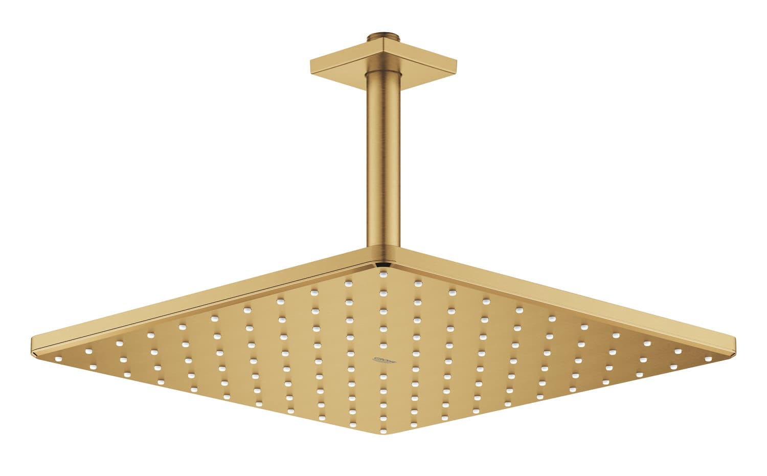 Set hlavové sprchy GROHE Rainshower 310 Mono Cube, 310mm, stropní, úsporná sprchová hlavice s 142mm sprchovým ramenem, kartáčovaný Cool Sunrise, hranatý tvar. 26566AL0