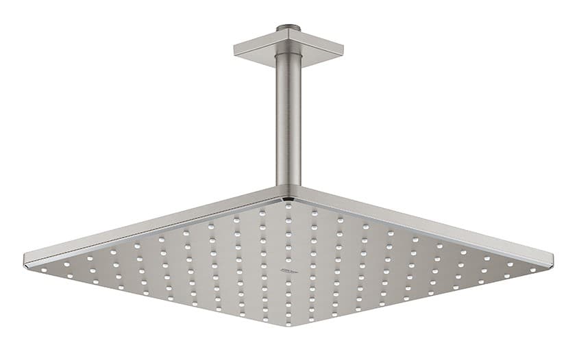 Set hlavové sprchy GROHE Rainshower 310 Mono Cube, 310mm, stropní, úsporná sprchová hlavice s 142mm sprchovým ramenem, nerezová ocel, hranatý tvar. 26566DC0