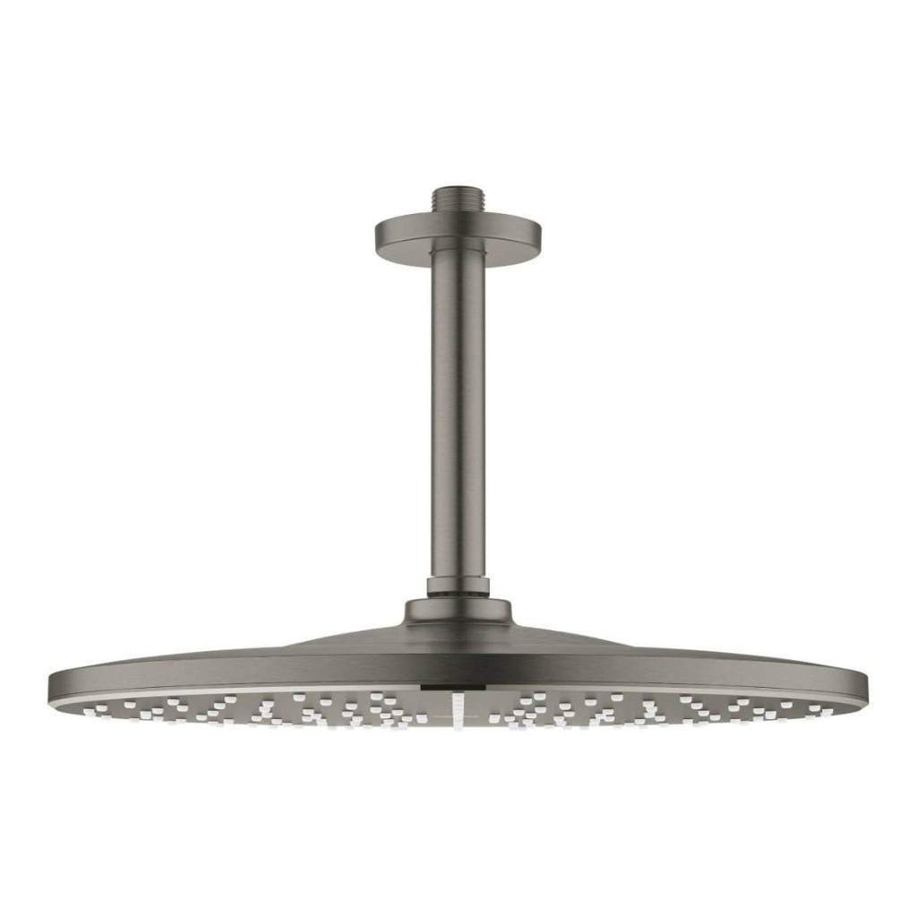 Dotaz na produkt Na splátky ještě dnesAktualizujte svou koupelnu sprchou, která vám zpříjemní celý den svým elegantním designem a skvělým výkonem - to je sprchový set GROHE Rainshower Mono 310 s hlavicí v elegantním a odolném barevném provedení Brushed Hard Graphite. Velká kulatá sprchová hlavice nabízí vynikající pokrytí a sprchový proud GROHE PureRain vytváří jemný obklopující pocit jako jemný déšť. Tato nástěnná kulatá hlavová sprcha s průměrem 310 mm je upevněna na 142mm dlouhém rameni a je vybavena technologií GROHE DreamSpray, která zaručuje dokonale rovnoměrný proud z každé sprchové trysky. Technologie GROHE Water Saving snižuje spotřebu vody bez snížení výkonu a omezuje průtok na 7,5 l/m. Trysky SpeedClean jsou navrženy tak, aby se pouhým otřením zbavily vodního kamene, a dlouhotrvající povrchová úprava GROHE Long-Life využívá fyzikální napařování (PVD) pro vyšší úroveň odolnosti proti poškrábání.