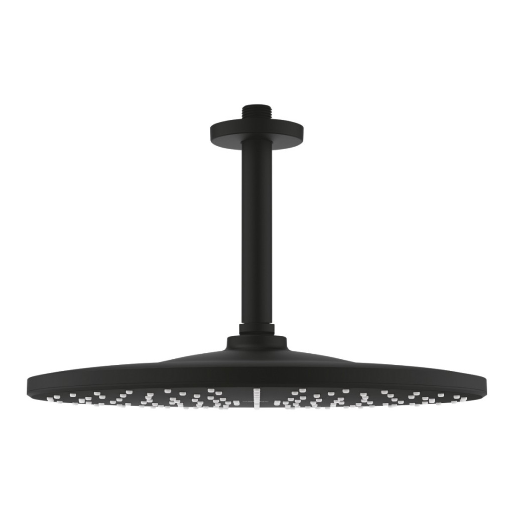 Dotaz na produkt Na splátky ještě dnesAktualizujte svou koupelnu sprchou, která vám zpříjemní celý den svým elegantním stylem a skvělým výkonem - to je sprchový set GROHE Rainshower Mono 310. Velká kulatá sprchová hlavice nabízí vynikající pokrytí a sprchový proud GROHE PureRain vytváří jemný obklopující pocit jako jemný déšť. Tato nástěnná kulatá hlavová sprcha s průměrem 310 mm je upevněna na 142mm dlouhém rameni a je vybavena technologií GROHE DreamSpray, která zaručuje dokonale rovnoměrný proud z každé sprchové trysky. Technologie GROHE Water Saving snižuje spotřebu vody bez snížení výkonu a omezuje průtok na 9,5 l/m. Trysky sprchové hlavice SpeedClean jsou navrženy tak, aby je stačilo pouhým otřením zbavit vodního kamene, a vysoce odolný povrch GROHE Long-Life bude vypadat bezchybně po dlouhá léta. Vnitřní vodicí prvek WaterGuide odvádí horkou vodu od povrchu, aby se příliš nezahřívala, a zajišťuje tak ještě delší životnost nápadného černého povrchu. Sprchový set GROHE Rainshower Mono 310 - kde se elegance snoubí s výkonem!