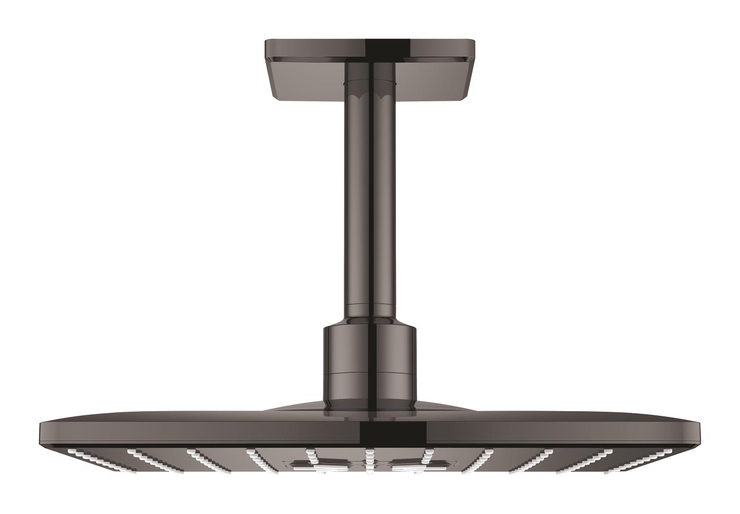 Set hlavové sprchy GROHE Rainshower 310 SmartActive CUBE se 2 režimy proudu vody. 310mm, stropní hlavová sprcha se 142mm sprchovým ramenem, povrchová úprava Hard Graphite, hranatý tvar. 26481A00