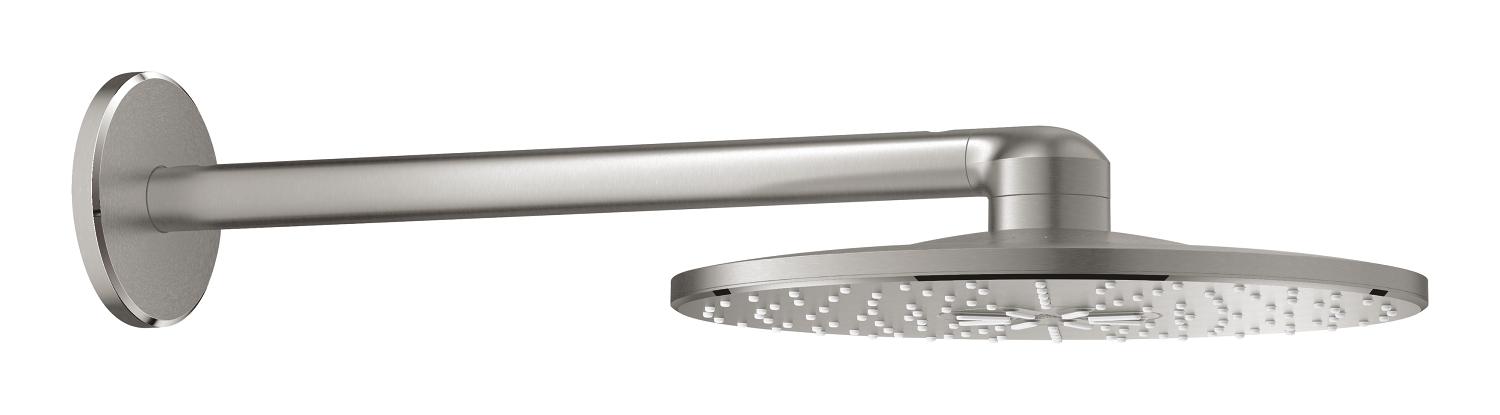 Set hlavové sprchy GROHE Rainshower 310 SmartActive se 2 režimy proudu vody. 310mm, nástěnná hlavová sprcha se 400mm sprchovým ramenem, povrchová úprava z nerezové oceli, kulatý tvar. 26475DC0