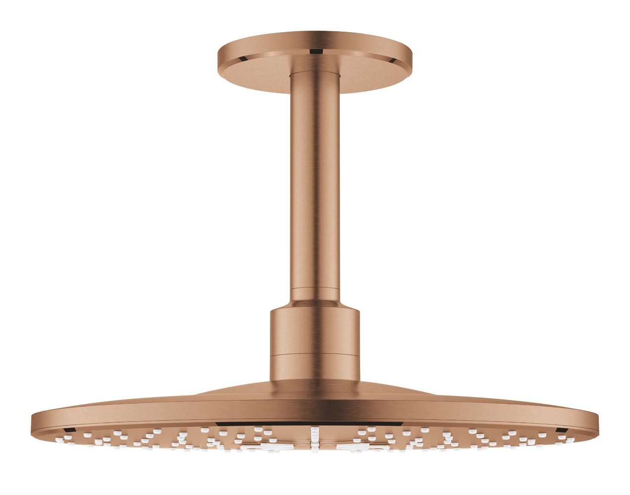 Set hlavové sprchy GROHE Rainshower 310 SmartActive se 2 režimy proudu vody. 310mm, nástěnná hlavová sprcha se 400mm sprchovým ramenem, povrchová úprava kartáčovaný Warm Sunset, kruhový tvar. 26477DL0