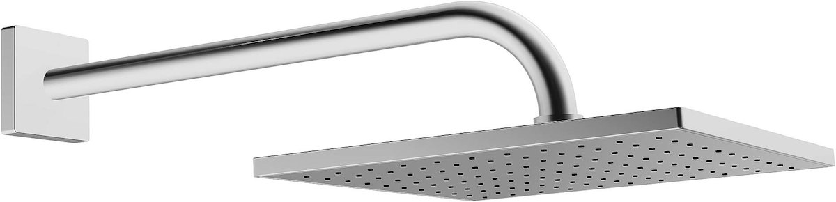 HANSAVIVA hlavová sprcha, DN 15 pro nástěnnou montáž hlavová sprcha, mosaz, čtvercová 250 x 250 mm také ke kombinaci s HANSAMATRIX průtokové množství 12 l/min, měřeno při 3 barech hydraulického tlaku • se sprchovým ramínkem 400 mm • (-) zesílené provedení, trubka Ø 26 mm • příruba upevnění a nástěnná růžice (hranatá) • nástěnná růžice hranatá, zabezpečená proti otočení • technika proti usazeninám vyložení: 400 mm chrom