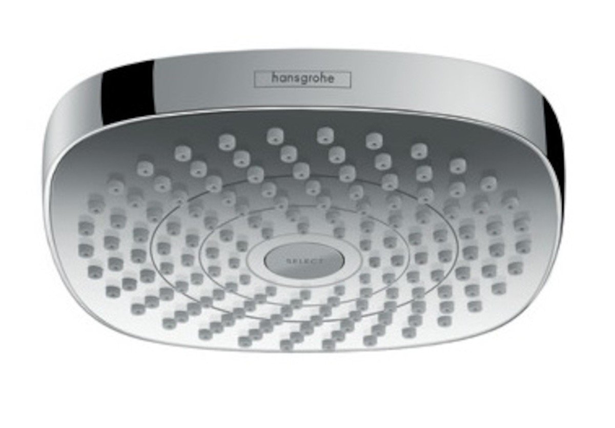 U horní sprchy Croma Select E 180 2jet od společnosti hansgrohe se typy proudu jednoduše nastavují stisknutím tlačítka přímo na sprchové hlavici (Select). sprchový disk o velikosti 180 mm s tryskami uspořádanými v kruzích vytváří s průtokovým množstvím až 17 l/min. ideální pocit z dešťového sprchování.