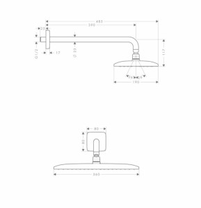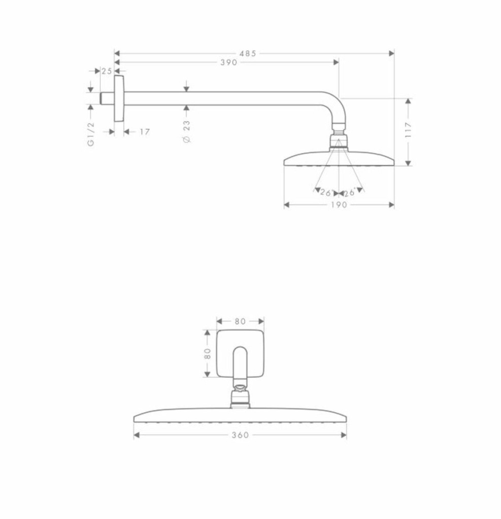 Horní sprcha hansgrohe Raindance E 360 Air 1jet je se svým dlouhým sprchovým ramenem (390 mm) dokonale vhodná na bezproblémovou modernizaci a dodá Vašemu sprchovému koutu nový rozměr. Lze ji namontovat na stěnu. Velkoformátová sprchová hlavice zajistí nádherný požitek ze sprchování. Proud RainAir Vás zahalí do širokého sprchového deště – pro luxusní pocit z vysněné relaxace a odplavení námahy všedního dne. Praktické: Kulový kloub umožňuje snadno nastavit úhel sprchové hlavice.