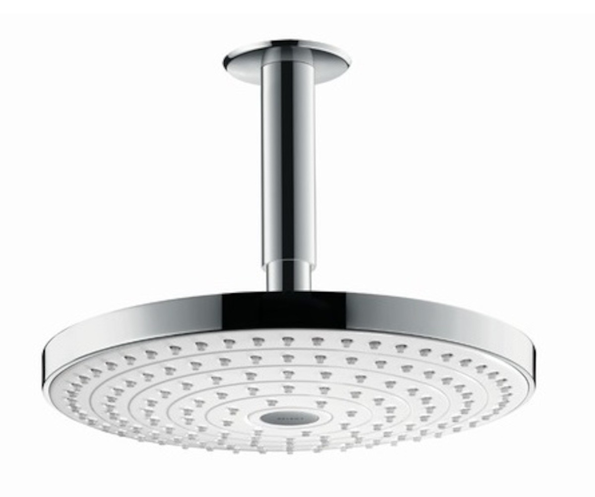 Déle jako nové: Vodní kámen lze odstranit jednoduchým otřením pružných silikonových trysek sprchové hlavice (QuickClean).Fascinující vzhled: Povrchy z vysoce lesklého chromu a bílé barvy spolu vytvářejí nezaměnitelný design.Kvalita firmy hansgrohe: Kovový sprchový disk lze navíc kvůli čištění sejmout.Snadná instalace: Přívod od stropu pasuje na standardní vývod vody (velikost G ½; DN15).Řada hansgrohe Raindance představuje spojení vynikajícího designu a vysoké kvality výrobků, které pozvednou koupelnu na vyšší úroveň.Potěšení ze sprchování: Sprchová hlavice o velikosti 240 mm vás bude hýčkat rovnoměrným, bohatým proudem vody (XXL Performance).Typ proudu určuje průtokové množství – max. 17 l/min. při volbě sprchového deště RainAir a max. 17,5 l/min. při výběru proudu Rain (při tlaku 3 bary).Pohodlné přepínání: Požadovaný typ proudu zvolíte snadno a rychle stisknutím tlačítka (Select).Včetně sprchového ramena pro přívod od stropu: Zajišťuje ideální polohu sprchové hlavice (délka: 100 mm).Fascinující vzhled: Povrchy z vysoce lesklého chromu a bílé barvy vytvářejí nezaměnitelný design.Jednoduché čištění: Vodní kámen lze odstranit lehkým otřením silikonových trysek sprchové hlavice (QuickClean).Dlouho jako nový: Kovový disk vodních paprsků horní sprchy lze kvůli čištění sejmout.Součásti dodávky: horní sprcha, přívod od stropu, přívodní vsuvka, upevňovací materiál, montážní návodVšechny součásti jsou vyrobeny z vysoce kvalitních materiálů – pro větší bezpečnost a dlouhodobé užívání v domácnosti.Historie hansgrohe od roku 1901 – prémiová značka výrobků pro koupelnu a kuchyňProdloužená pětiletá záruka* na produkt, vyrobený podle nejvyšších kvalitativních standardů *(viz www.hansgrohe.cz/zaruka)PARAMETRY: