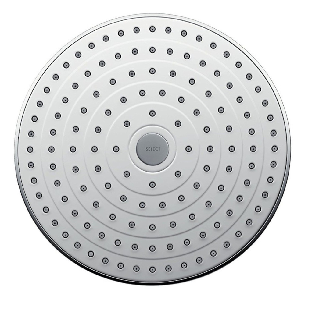Oby typy proudu se nastavují stisknutím tlačítka Select od hansgrohe přímo na sprchové hlavici (Select). Podle nálady tak máte vždy k dispozici ten pravý sprchový proud. Přívod od stropu (100 mm) přitom zajišťuje ideální polohu dešťové sprchy. Díky použití kulového kloubu je totiž možné i nastavení úhlu horní sprchy.