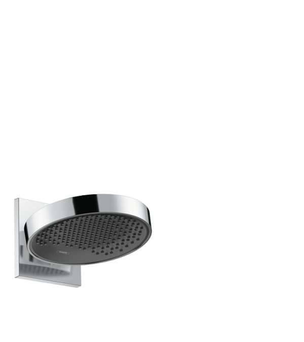 Horní sprcha vnáší do koupelny i vizuální požitek, a to díky svému dvoubarevnému povrchu z vysoce lesklého chromu a sprchového disku v antracitové barvě z eloxovaného hliníku, který je mírně vyklenutý dovnitř. Tato módní barva velmi dobře ladí s příjemně útulnými materiály, jako je dřevo nebo textil. Společně s dalšími výrobky řady Rainfinity si tak milovníci designu mohou snadno vytvořit svou soukromou wellness koupelnu.