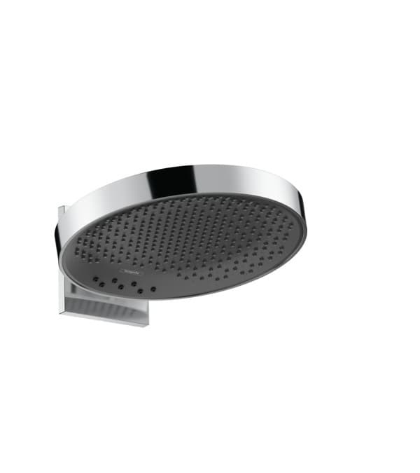 Horní sprcha vnáší do koupelny i vizuální požitek, a to díky svému dvoubarevnému povrchu z vysoce lesklého chromu a sprchového disku v antracitové barvě z eloxovaného hliníku, který je mírně vyklenutý dovnitř. Tato módní barva velmi dobře ladí s příjemně útulnými materiály, jako je dřevo nebo textil. Společně s dalšími výrobky řady Rainfinity si tak milovníci designu mohou snadno vytvořit svou soukromou wellness koupelnu.