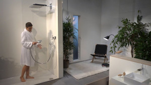 sprchový disk 466x300 mm vypadá lehce a elegantně. Rozmazluje Vás rovnoměrným a bujným proudem vody (XXL Performance). Sprchová řada hansgrohe Rainmaker je vhodná zejména pro velké sprchové prostory a nastavuje designové akcenty v koupelně. Pro ovládání sprchové hlavice se doporučuje vhodný skrytý termostat z řady Hansgrohe RainSelect v bíle chromovaném provedení. Jedná se o luxusní sprchování.