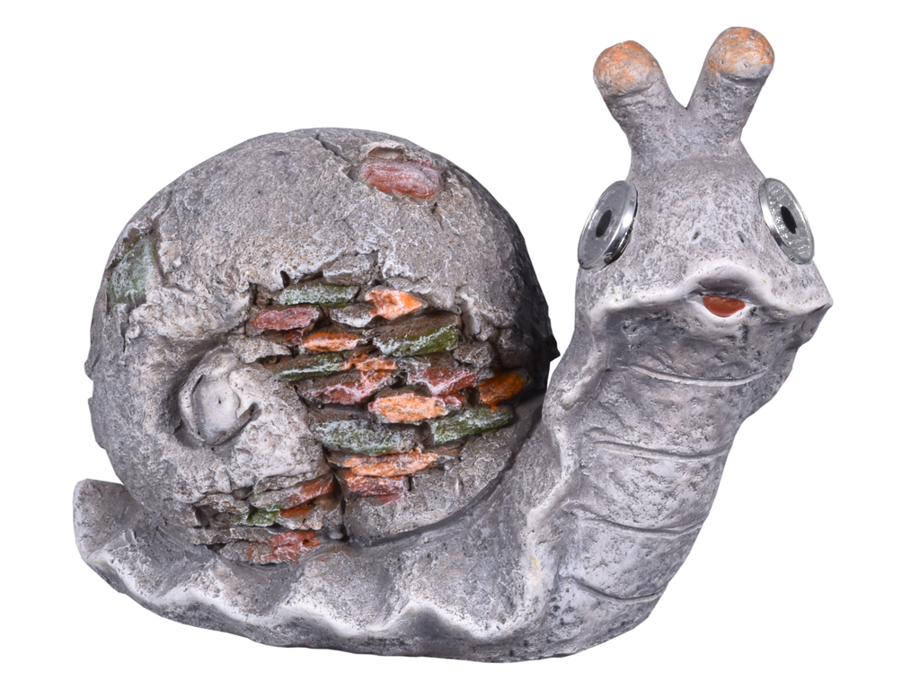 Dotaz na produktSolární dekorativní figurka hlemýždě je vyrobena z odolného polyresinu s jemně strukturovaným povrchem, který imituje přírodní kámen a zajišťuje dobrou tvarovou i barevnou stálost při venkovním použití, přičemž ulita je vybavena integrovaným solárním panelem a LED světlem, které se po setmění automaticky rozsvěcí a vytváří jemné dekorativní osvětlení, takže figurka plní nejen okrasnou, ale i světelnou funkci v zahradě, na terase nebo u vstupu do domu a je určena pro celoroční venkovní použití bez nutnosti kabeláže nebo externího napájení. Rozměry: délka 22 cm, šířka 12 cm, výška 17 cm. Materiál: polyresin. Barva: šedá.