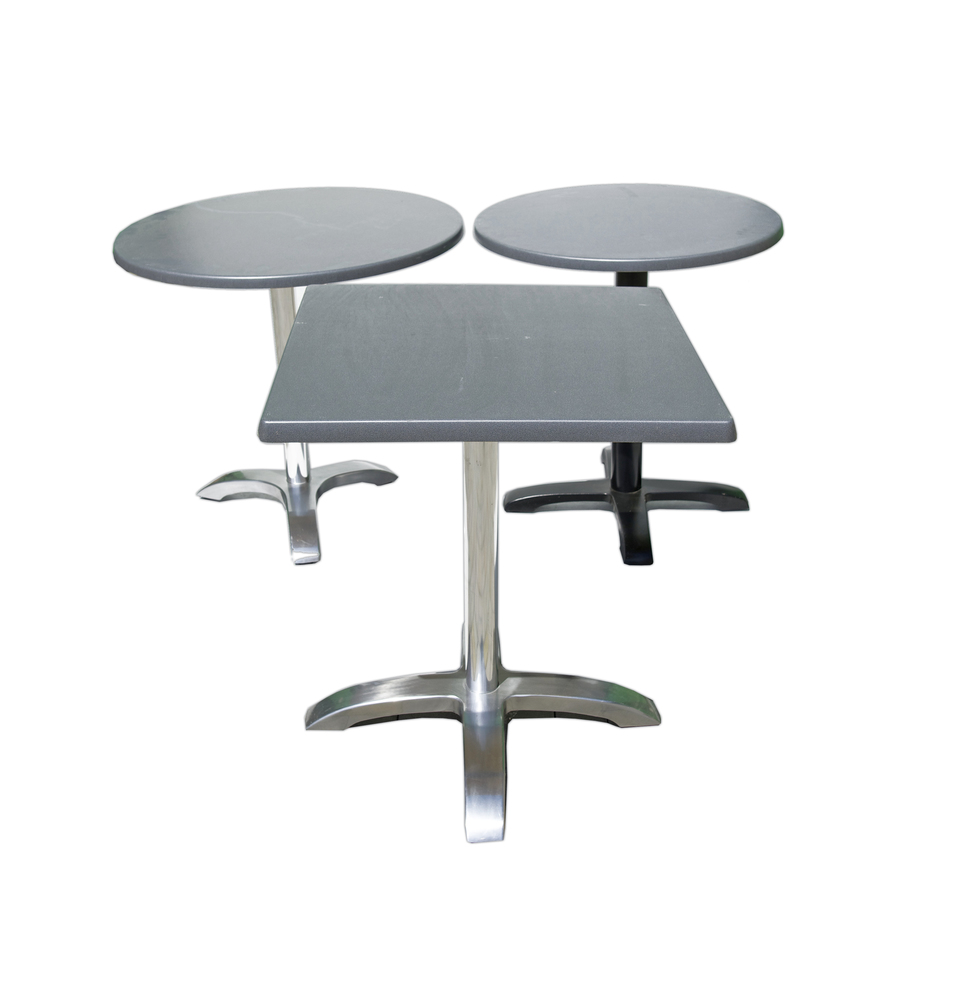 Dotaz na produktSPECIÁLNÍ VÝPRODEJOVÁ CENA - do vyprodání zásob! Hliníková podnož pod stolové desky TOPALIT o výšce 70cm. (šrouby v ceně) Sestavte si stůl podle vlastních představ - velký výběr stolových desek. Stůl (kostra + deska Topalit) je vhodný na terasu, balkón, do kaváren či restaurací. hliník 1.5mm, 3-nož,