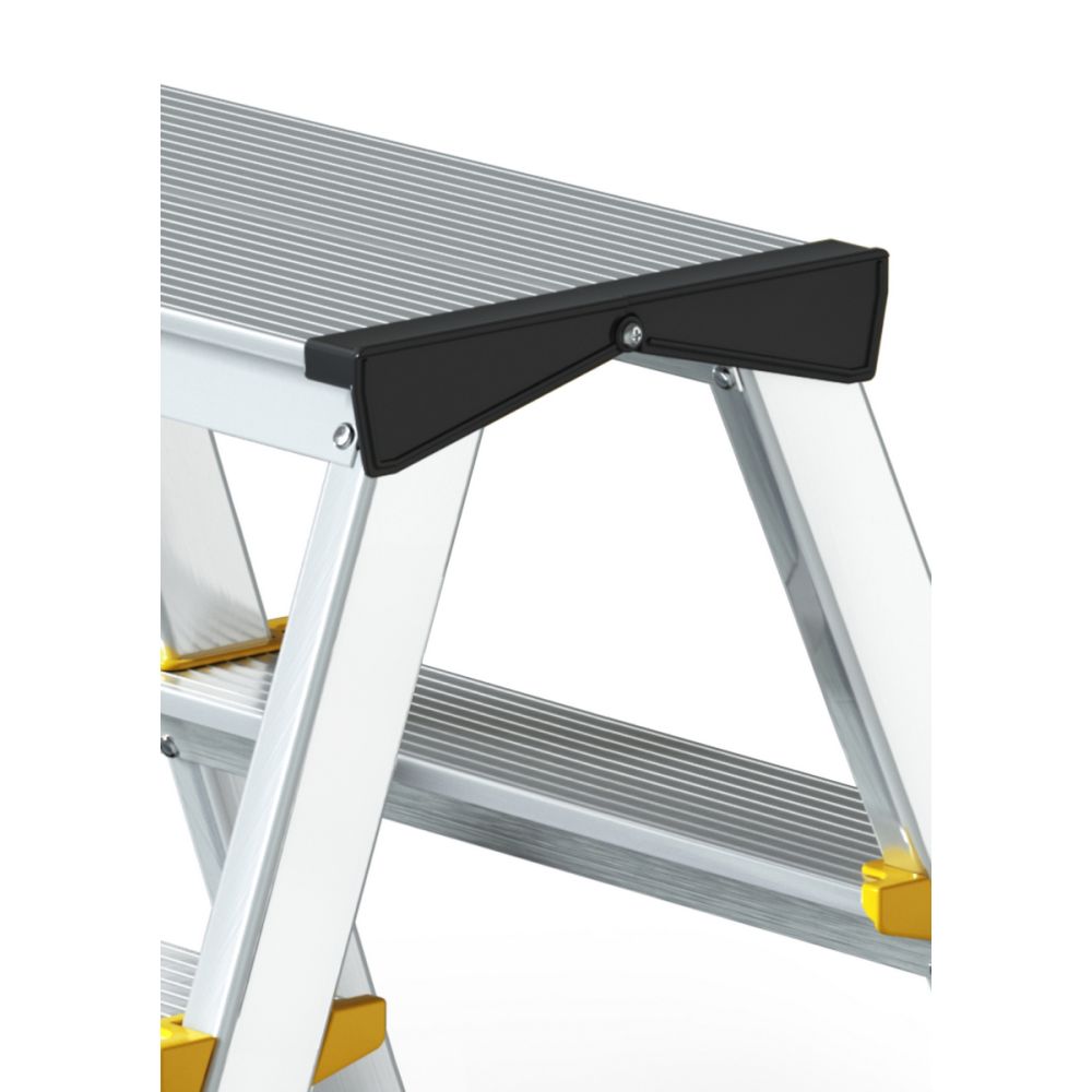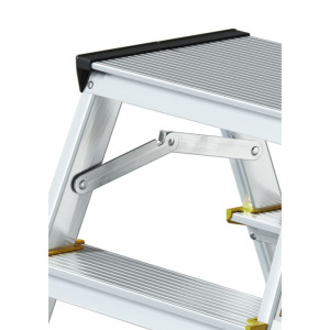 Oboustranné schůdky jsou vyrobeny z vysoce odolného a lehkého hliníku. Jsou velmi dobře manipulovatelné a ve složeném stavu zaberou málo místa.