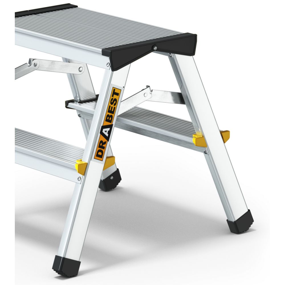 Hliníkové schůdky DRABEST DD2 PRO jsou vhodné pro každodenní intenzivní používání v průmyslu, na stavbě a dalších náročných oborech vyžadujících nekompromisní kvalitu. Schůdky splňují přísné bezpečností normy dle EN 131 a jsou certifikovány německou zkušebnou TÜV Rheinland. Nosnost číní150 kg.