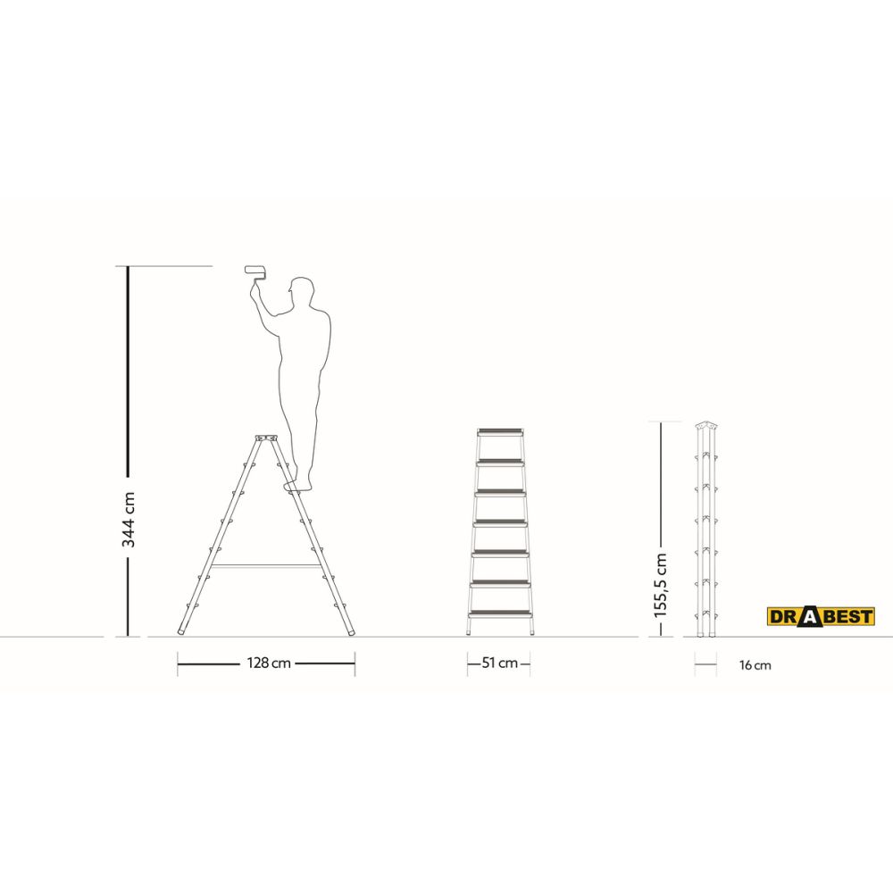 Oboustranné schůdky jsou vyrobeny z odolného a lehkého hliníku. Jsou velmi dobře manipulovatelné a ve složeném stavu zaberou málo místa.
