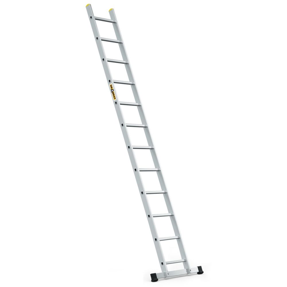Hliníkový žebřík 1x12 příček jednodílný DRABEST DP-12 PRO je praktický a spolehlivý pomocník pro každodenní práce ve výškách. Díky přídavnému stabilizátoru je vysoce stabilní a snadno použitelný jako přístavný nebo opěrný žebřík. Jeho lehkost a odolnost oceníte zejména při snadné manipulaci. Ať už ho využíváte v domácnosti, na zahradě nebo při profesionálních pracích. S délkou 12 příček poskytuje dostatečnou výšku pro širokou škálu úkolů.