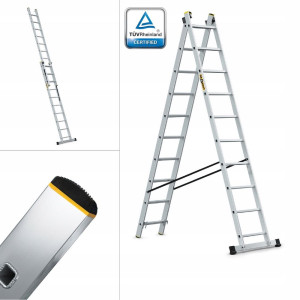 Dotaz na produkt Na splátky ještě dnesProfesionální víceúčelový žebřík se stabilizátorem, 2x10 příček, délka žebříku 4,32 m, max. pracovní výška 5,53 m, nosnost 150 kg. Certifikace TÜV Rheinland, EN 131 pro profi použití.