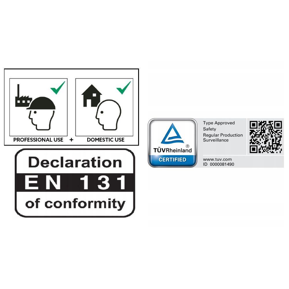 Žebřík má nosnost 150 kg, vynikající tuhost, odolnost a dlouhou životnost. Díky lehké hliníkové konstrukci je velmi dobře manipulovatelný.