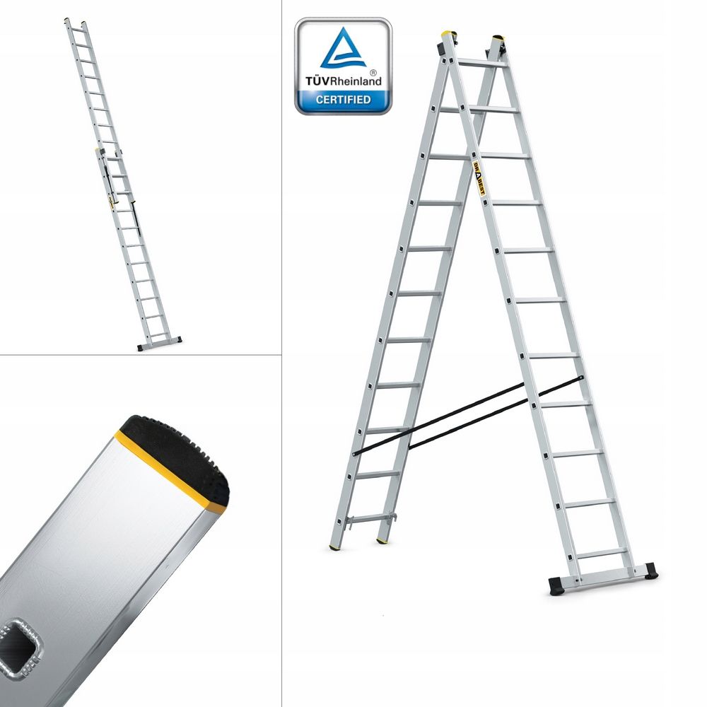 Hliníkový žebřík DRABEST DW2-11 PRO je vhodný pro každodenní intenzivní používání v průmyslu, na stavbě a dalších náročných oborech vyžadujících nekompromisní kvalitu. Žebřík splňuje přísné bezpečností normy dle EN 131 a je certifikován německou zkušebnou TÜV Rheinland.