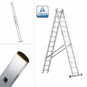 Dotaz na produkt Na splátky ještě dnesProfesionální víceúčelový žebřík se stabilizátorem, 2x13 příček, délka žebříku 5,64 m, max. pracovní výška 6,55 m, nosnost 150 kg. Certifikace TÜV Rheinland, EN 131 pro profi použití.