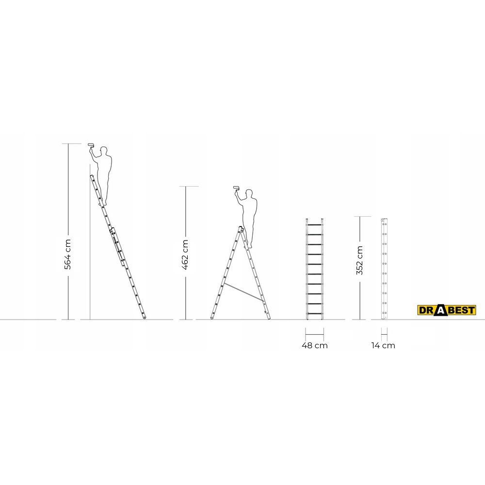 Hliníkový žebřík DRABEST DW2-13 PRO je vhodný pro každodenní intenzivní používání v průmyslu, na stavbě a dalších náročných oborech vyžadujících nekompromisní kvalitu. Žebřík splňuje přísné bezpečností normy dle EN 131 a je certifikován německou zkušebnou TÜV Rheinland.