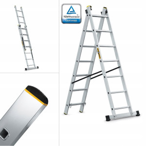Dotaz na produkt Na splátky ještě dnesProfesionální víceúčelový žebřík se stabilizátorem, 2x7 příček, délka žebříku 3,00 m, max. pracovní výška 4,25 m, nosnost 150 kg. Certifikace TÜV Rheinland, EN 131 pro profi použití.