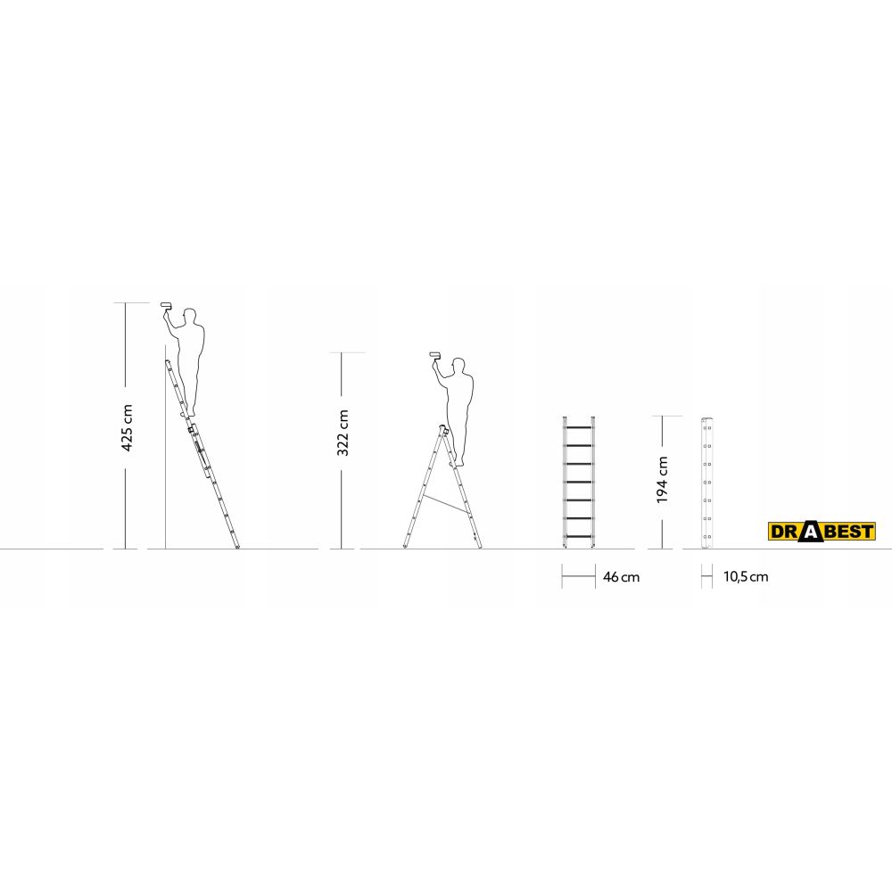 Hliníkový žebřík DRABEST DW2-7 PRO je vhodný pro každodenní intenzivní používání v průmyslu, na stavbě a dalších náročných oborech vyžadujících nekompromisní kvalitu. Žebřík splňuje přísné bezpečností normy dle EN 131 a je certifikován německou zkušebnou TÜV Rheinland.