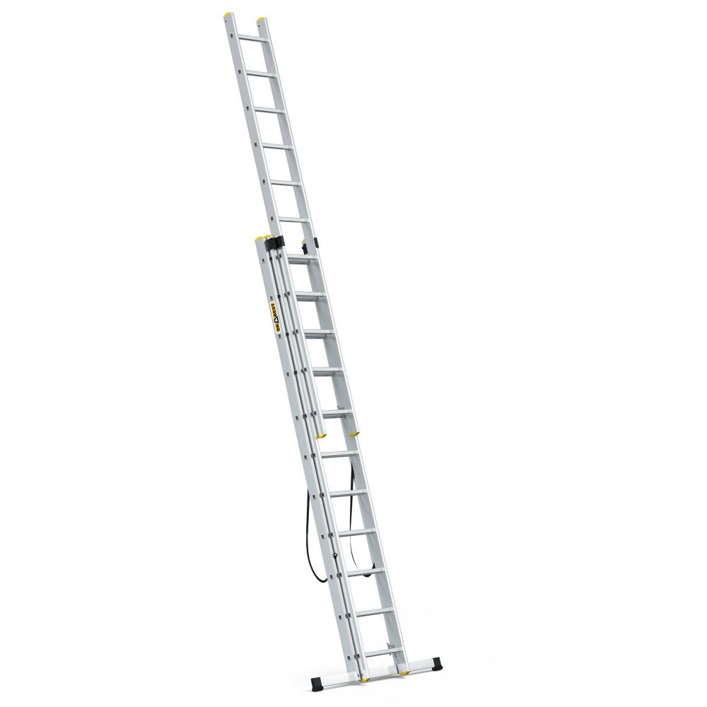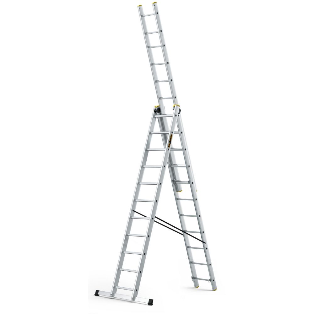 Dotaz na produkt Na splátky ještě dnesProfesionální víceúčelový žebřík se stabilizátorem, 3x11 příček, max. pracovní výška 6,31 m, nosnost 150 kg. Certifikace TÜV Rheinland, EN 131 pro profi použití.