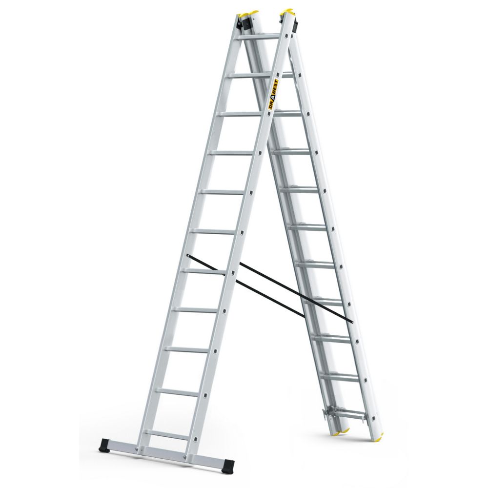 Profesionální víceúčelový žebřík se stabilizátorem, 3x11 příček, max. pracovní výška 6,31 m, nosnost 150 kg. Certifikace TÜV Rheinland, EN 131 pro profi použití.