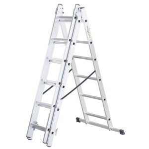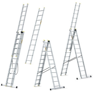 Dotaz na produkt Na splátky ještě dnesVíceúčelový hliníkový žebřík se stabilizátorem, 3x6 příček, max. pracovní výška 3,98 m, nosnost 150 kg. Certifikace TÜV Rheinland, EN 131 pro domácí použití.