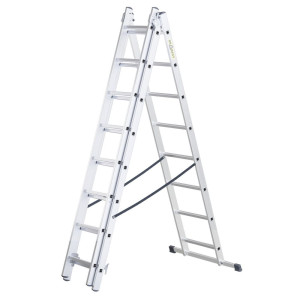 Dotaz na produkt Na splátky ještě dnesVíceúčelový hliníkový žebřík se stabilizátorem, 3x8 příček, max. pracovní výška 4,97 m, nosnost 150 kg. Certifikace EN 131 pro domácí použití.