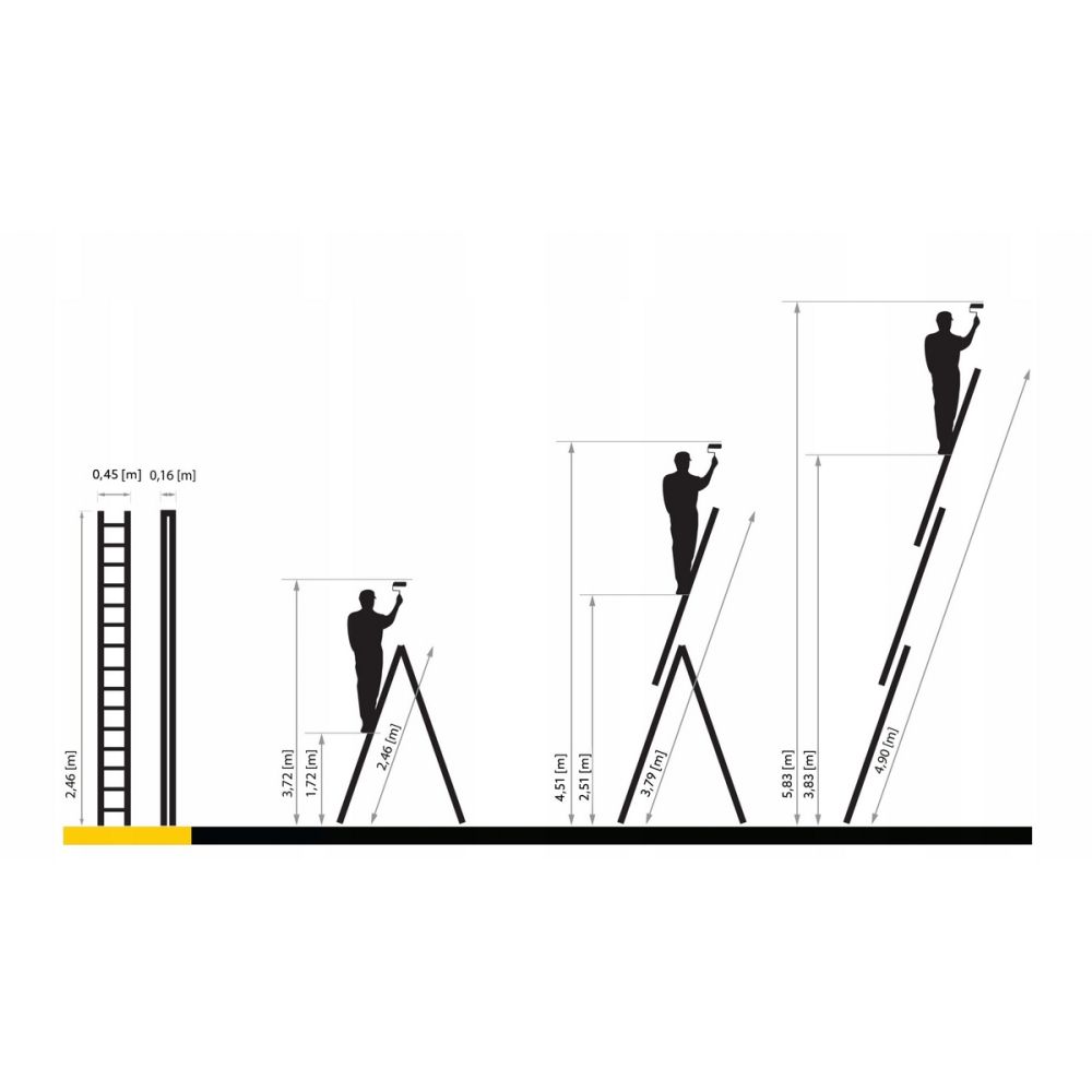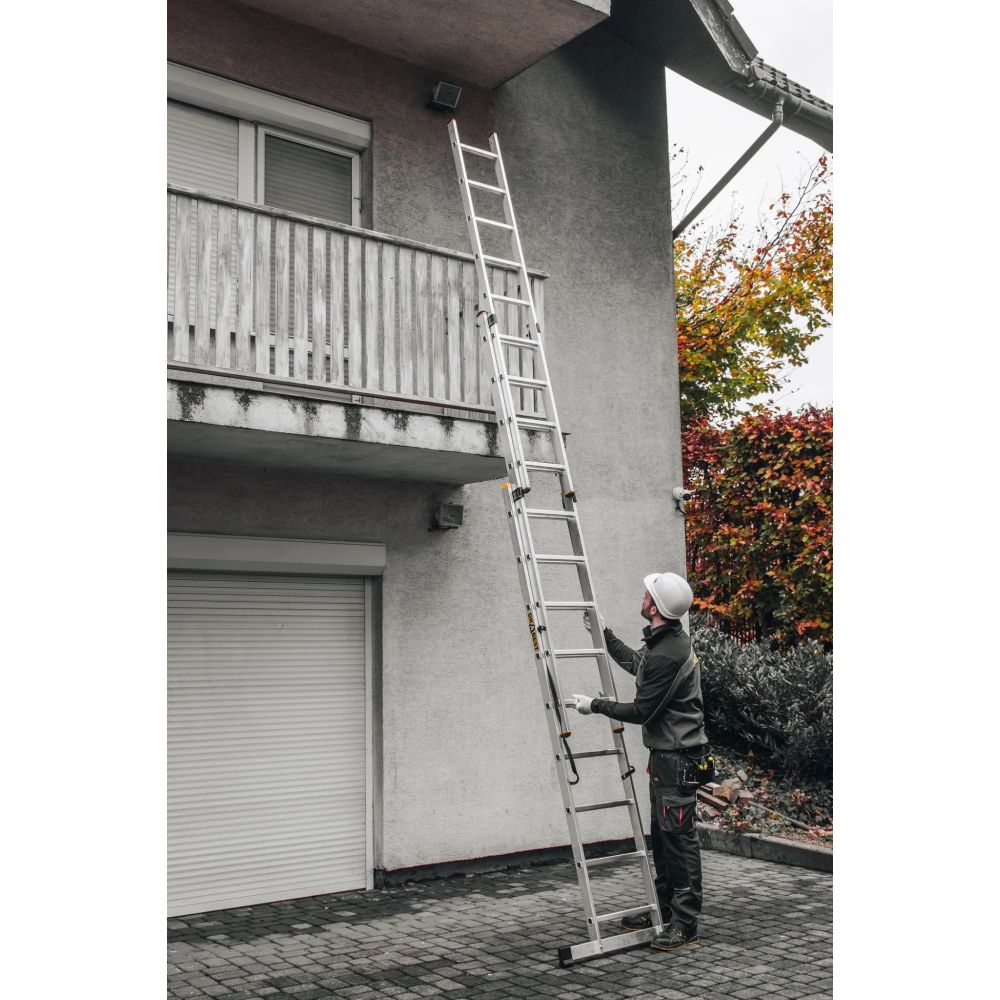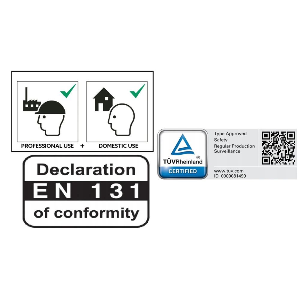 Hliníkový žebřík DRABEST DW3-9 PRO je vhodný pro každodenní intenzivní používání v průmyslu, na stavbě a dalších náročných oborech vyžadujících nekompromisní kvalitu. Žebřík splňuje přísné bezpečností normy dle EN 131 a je certifikován německou zkušebnou TÜV Rheinland.
