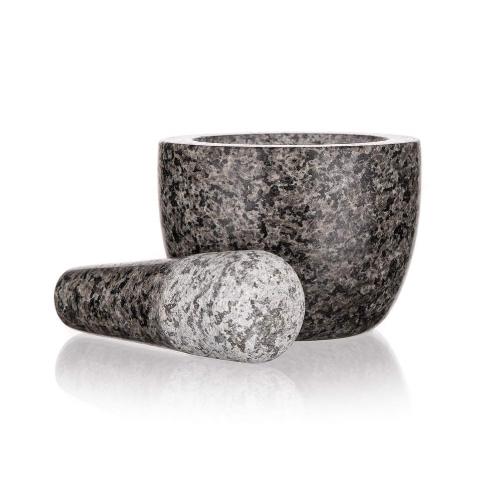 Dotaz na produktHmoždíř žulový CULINARIA s tloučkem pro klasické drcení koření, bylinek a výrobu domácího pesta. Hmoždíř si najde své místo v každé kuchyni jako užitečný pomocník i ozdoba. TIP: Je dobré nakupovat celé koření, jelikož mleté koření časem ztrácí chuť a vůni. Proto je dobré si potřebné množství vždy čerstvě rozmělnit například v hmoždíři. Délka tloučku je 11,5 cm.